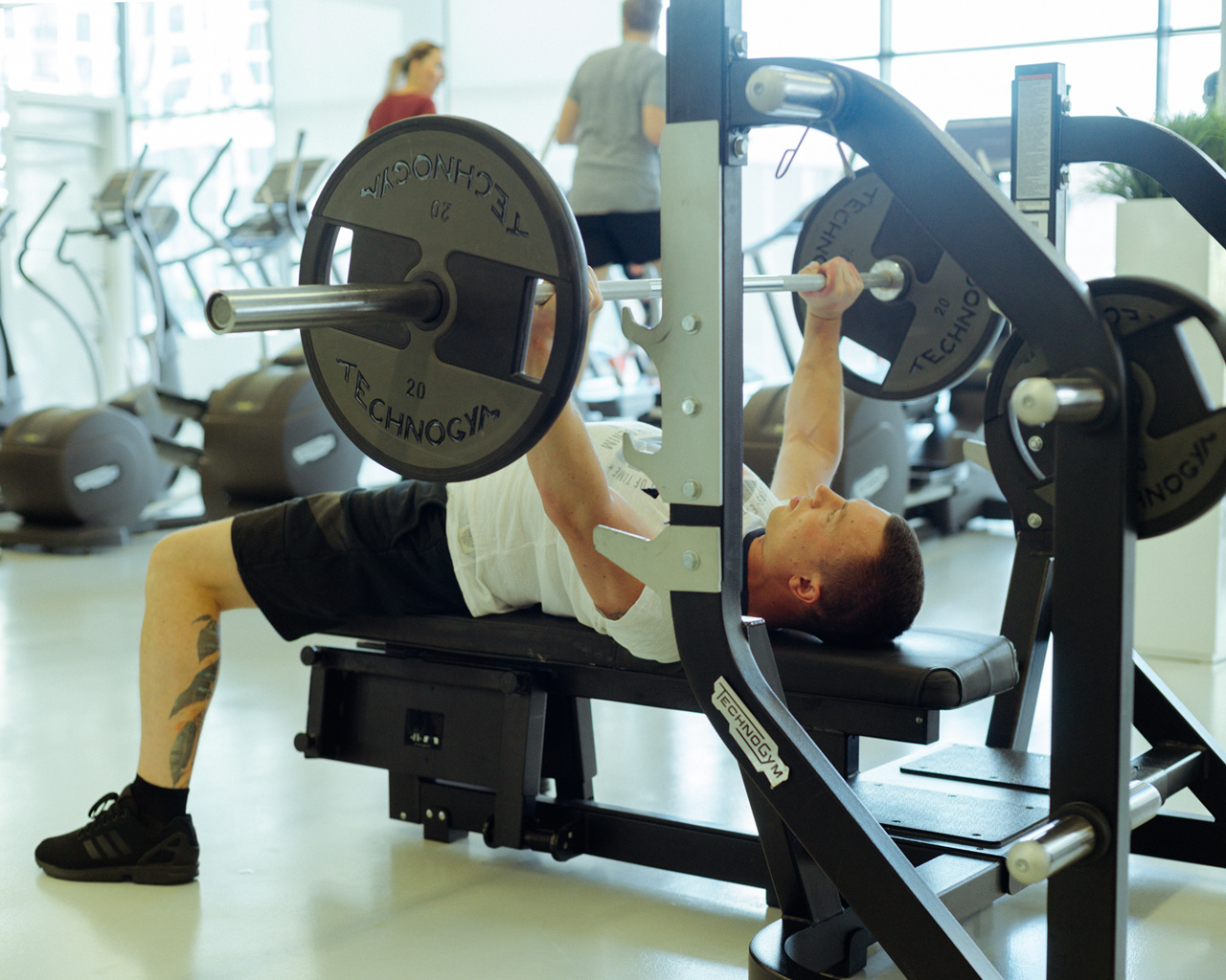 Чемпионат, к которому готовился Алексей, проходил в фитнес-клубе на территории «РЖД Арены». Внутри — как в лобби отеля: ковры с узорами, вазы с орхидеями. Поддержать Алексея на соревнованиях пришли друзья и жена Лена. Она, кстати, не против занятий пауэрлифтингом, наоборот — помогает мужу соблюдать режим, считает вместе с ним калории и ездит на все выступления. Ее главная просьба — только без фанатизма.