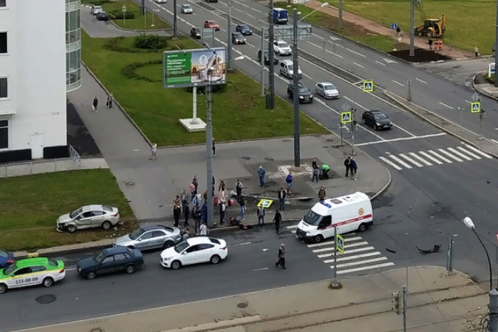 В Красносельском районе автомобиль после ДТП отлетел в пешеходов. Пострадали три человека, сообщают очевидцы