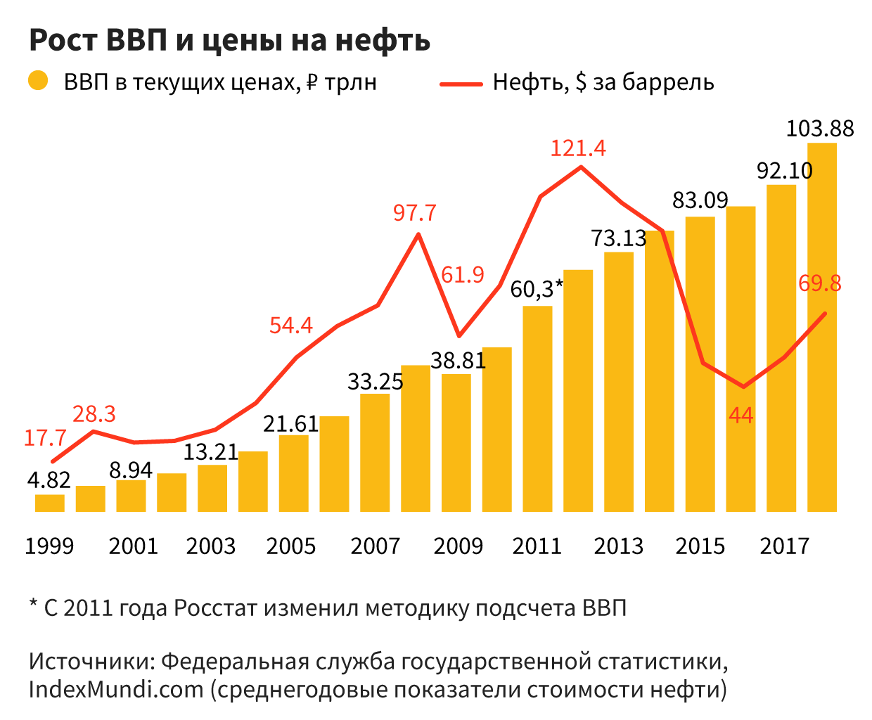 - «Единственный класс, который чего-то добился и что-то сделал для страны за все эти годы, — это бизнес, — рассуждал недавно в разговоре с The Bell один из крупных российских банкиров. — Ни интеллигенции, ни элитам ничего не удалось». Но, связанные взаимными обязательствами (гарантии безопасности в обмен на полное невмешательство в государственные дела), дальше бизнес и власть уже ничем не могли помочь друг другу. За 10 посткризисных лет темпы роста экономики были меньше 2% в год.