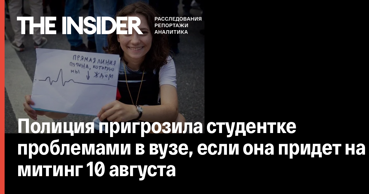 Полиция пригрозила студентке проблемами в вузе, если она придет на митинг 10 августа