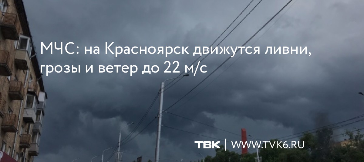 МЧС: на Красноярск движутся ливни, грозы и ветер до 22 м/с