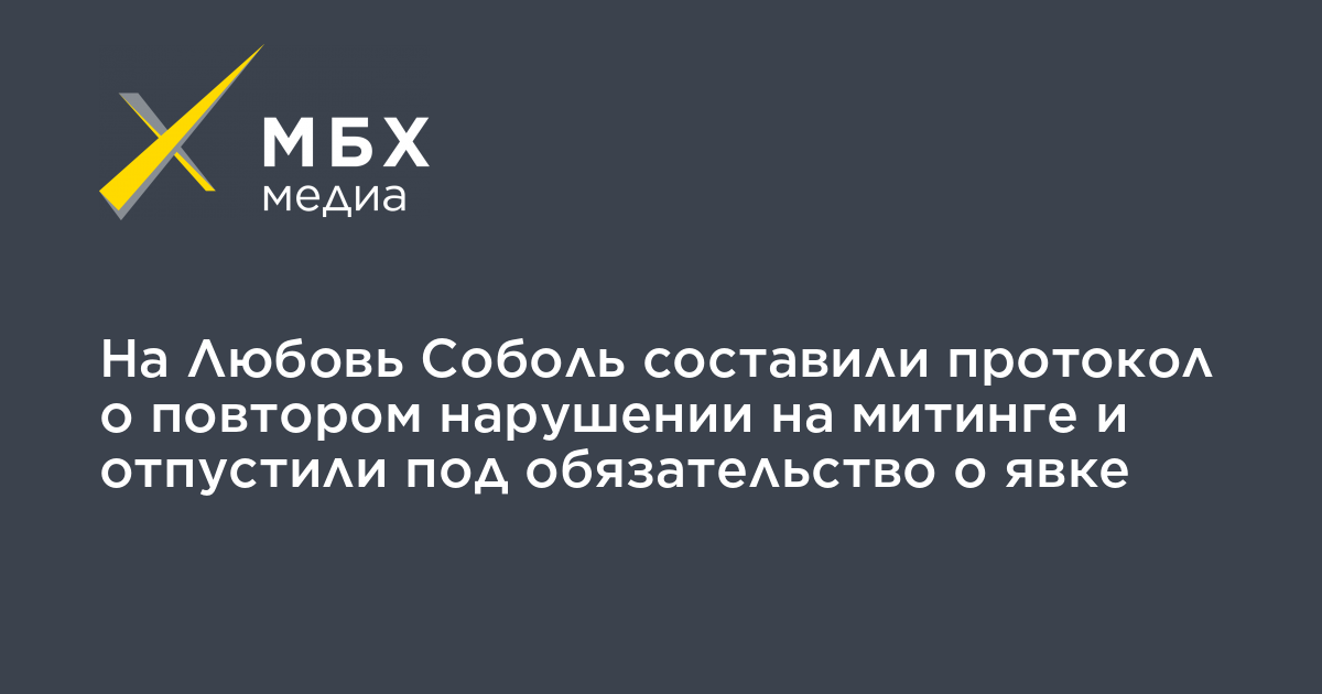 На Любовь Соболь составили протокол о повтором нарушении правил проведения митинга (часть 8 статьи 20.2 КоАП) и отпустили под обязательство о явке. Об этом сообщает «Апология протеста».