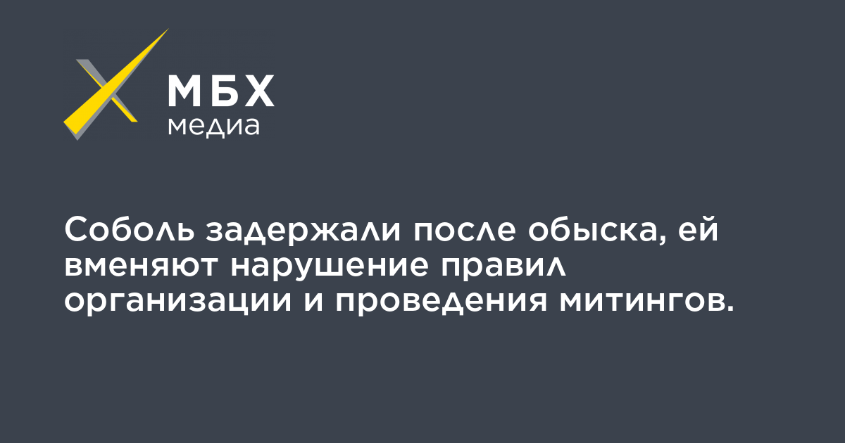 Соболь задержали после обыска, ей вменяют нарушение правил организации и проведения митингов.