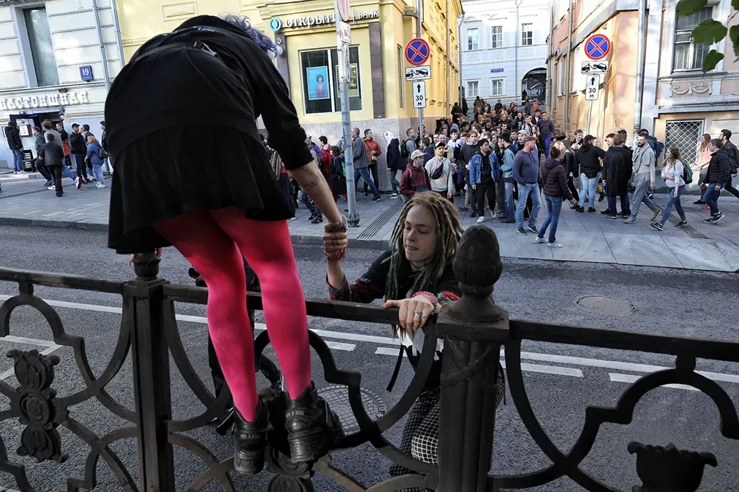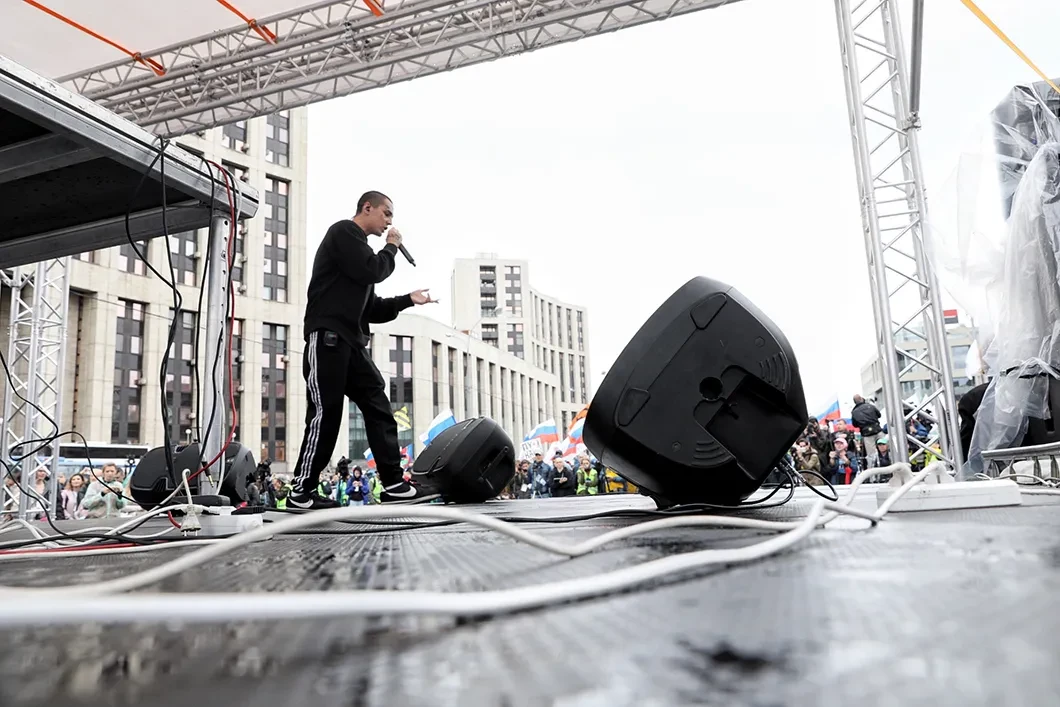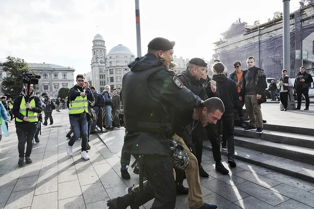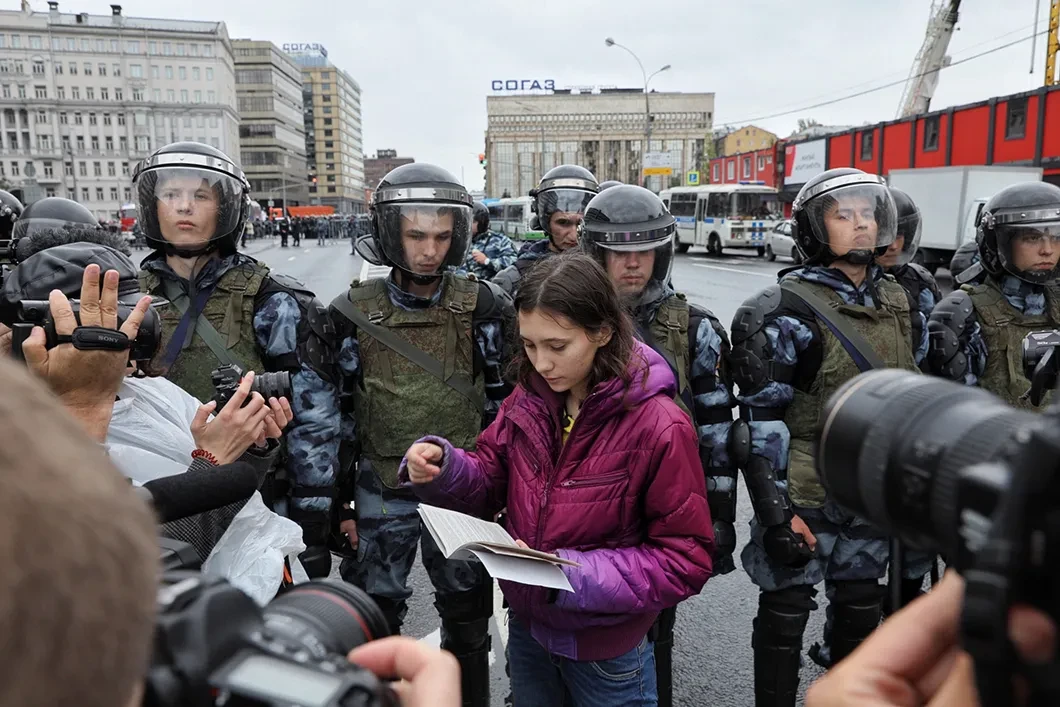 Сотрудник полиции в оцеплении на Проспекте Сахарова. Фото: Влад Докшин / «Новая газета»Репер Оксимирон призвал свою аудиторию на согласованный митинг и рассказал, что сам впервые выйдет на политическую акцию. На футболке надпись «Свободу Егору Жукову!». Жуков — студент «Вышки» и фигурант уголовного дела о «массовых беспорядках» на мирных акциях в Моске. Фото: Влад Докшин / «Новая газета»Шило, лидер «Кровостока», выступает со сцены митинга на Сахарова. Группа исполнила песни: «Душно» и «Череповец». Фото: Влад Докшин / «Новая газета»Митинг на Проспекте Сахарова в Москве собрал почти 50 тысяч человек. Акция стала самой многочисленной за последние годы. Фото: Влад Докшин / «Новая газета»Школьница Ольга Мисик читает омоновцам Конституцию. Фото: Влад Докшин / «Новая газета»Репер Face выступает со сцены митинга. Фото: Влад Докшин / «Новая газета»Face спел «Калашникова» и «Юмориста». Фото: Влад Докшин / «Новая газета»Один из самых неожиданных сюжетов мирно прошедшго митинга на Сахарова — эпизод со сбитым сотрудниками полиции дроном. На фото: электрическое ружье. Фото: Влад Докшин / «Новая газета»Политолог Екатерина Шульман (в центре), член Совета по правам человека при президенте, на митинге. Фото: Влад Докшин / «Новая газета»Полицейское оцепление на митинге. Фото: Влад Докшин / «Новая газета»Популярный блогер и стендапер Данила Поперечный — один из выступивших на митинге. Фото: Влад Докшин / «Новая газета»Леонид Парфенов сорвал аплодисменты митинга: «До какой степени срама надо дойти, чтобы ректор бежал впереди полиции наказывать своих студентов?!». Фото: Влад Докшин / «Новая газета»Оксимирон вышел к обычным участникам митинга. Фото: Влад Докшин / «Новая газета»Участники митинга. Фото: Влад Докшин / «Новая газета»Начало митинга сопровождалось сильным дождем, а у ведущих были большие проблемы с аппаратурой сцены. Но к середине мероприятия распогодилось и звук удалось наладить. Фото: Влад Докшин / «Новая газета»По окончании согласованного мероприятия силовики укрепились около здания администрации президента, к которому позвали «прогуляться» некоторые выступившие на митинге. Часть подземных переходов в районе Китай-города и Солянки были перекрыты. Тут же начались и первые задержания. Мужчина на фото кричал, что у него болит сердце и, предположительно, потерял сознание во время задержания. Фото: Влад Докшин / «Новая газета»Жесткое задержание на Маросейке. Фото: Влад Докшин / «Новая газета»Школьница Ольга Мисик перед оцеплением на Китай-городе. Фото: Влад Докшин / «Новая газета»Собравшиеся в Китайгородском сквере убегали от полиции через забор. Фото: Влад Докшин / «Новая газета»Оцепление на Старой площади. Фото: Влад Докшин / «Новая газета»