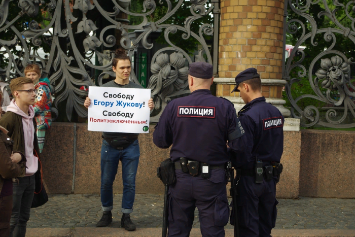 В центре Петербурга прошли одиночные пикеты в поддержку фигурантов московского дела о массовых беспорядках