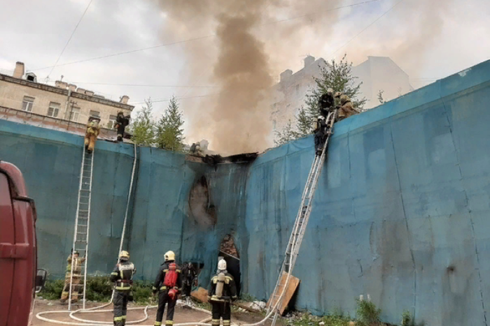 Рядом с бизнес-центром в центре Петербурга горело ремонтируемое здание