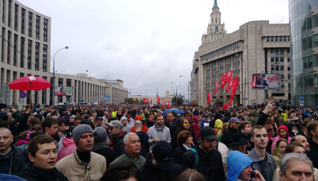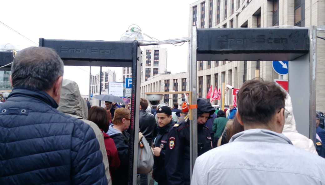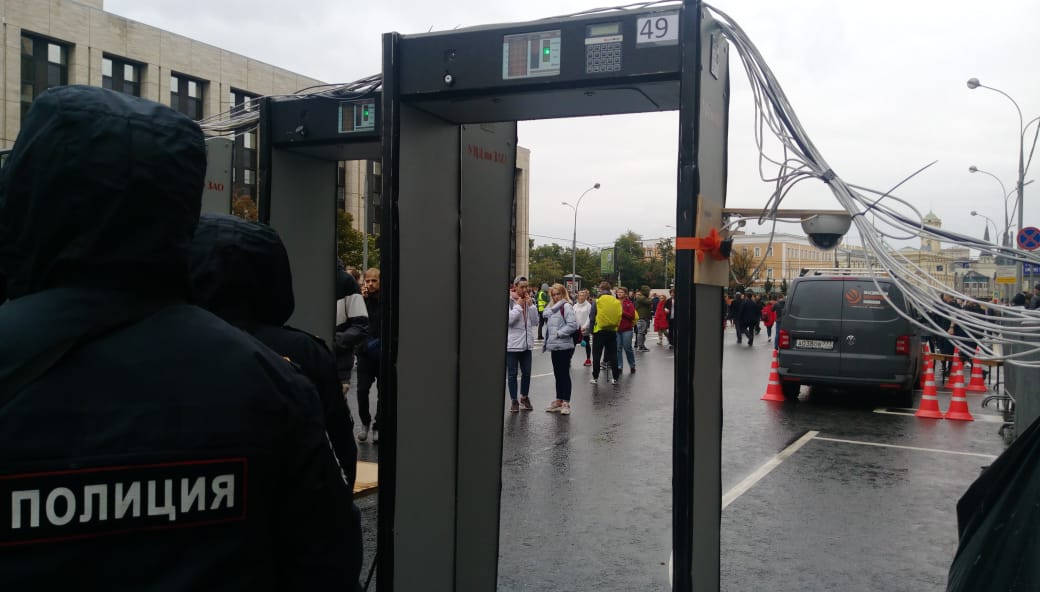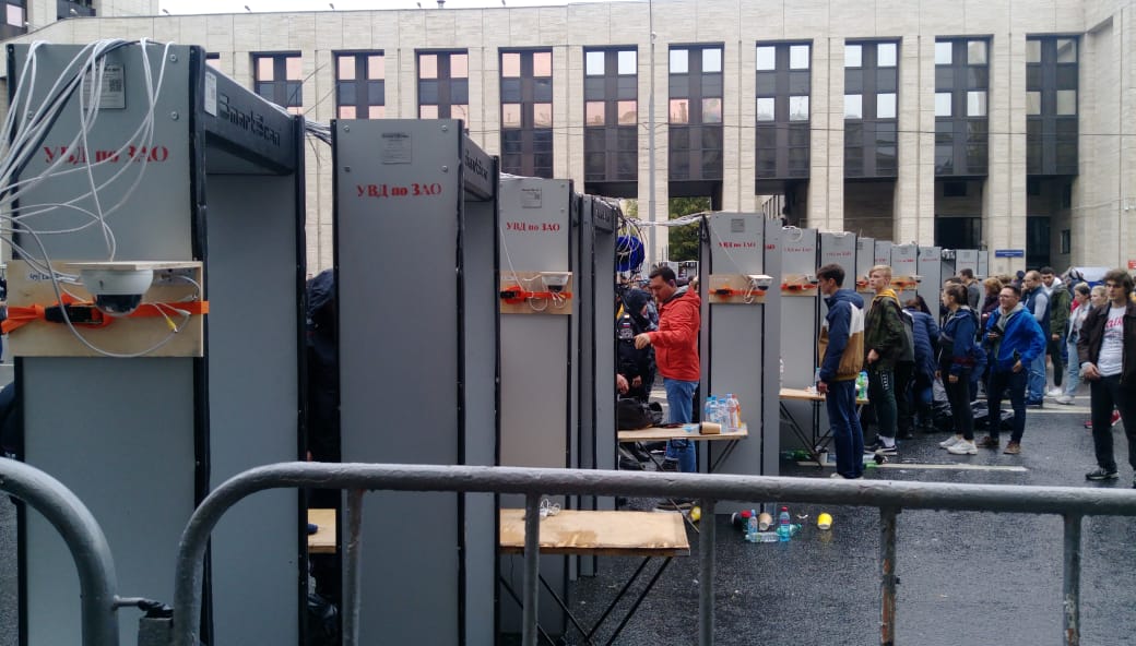 В какой-то момент поток был настолько сильный, что полиция перестала досматривать проходящих через рамки металлоискателей людей и, более того, начала впускать протестующих не только через «рамки», так что подсчеты не могут быть абсолютно точными.