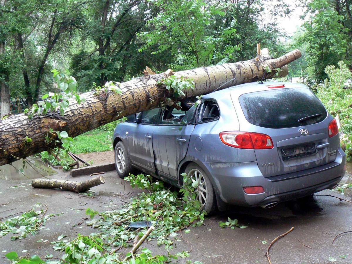 Мужчина оставил машину на улице. При порыве ветра на неё упало дерево. Автомобилю был причинен значительный ущерб.