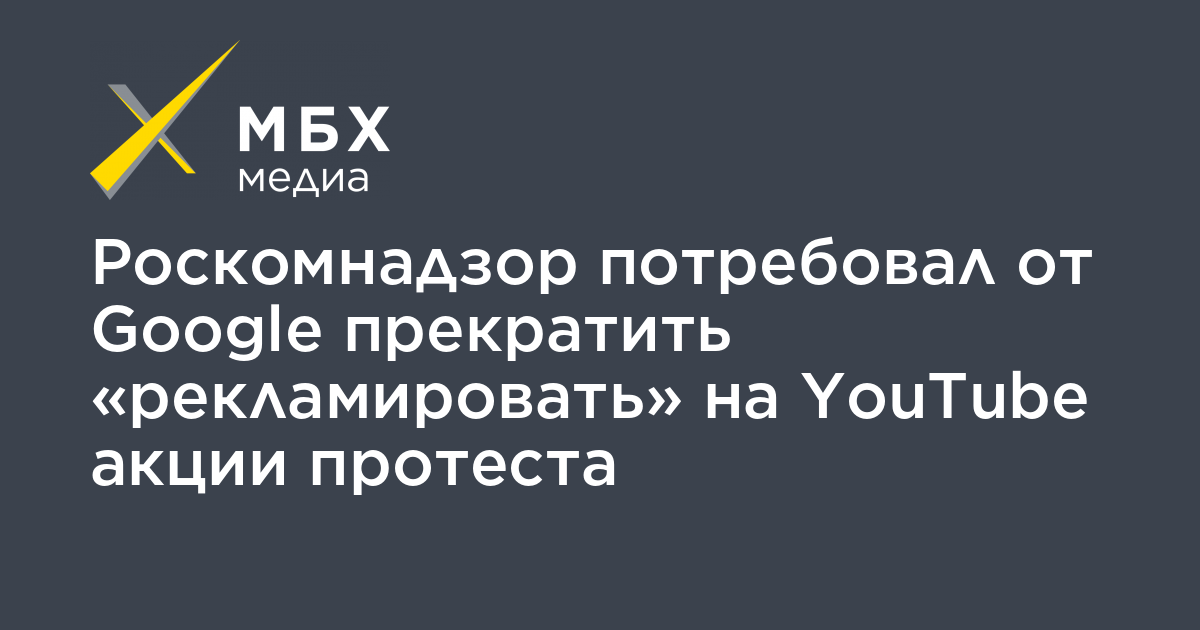 Роскомнадзор направил в Google письмо с требованием прекратить «рекламировать» на YouTube несанкционированные акции, сообщается на сайте службы.