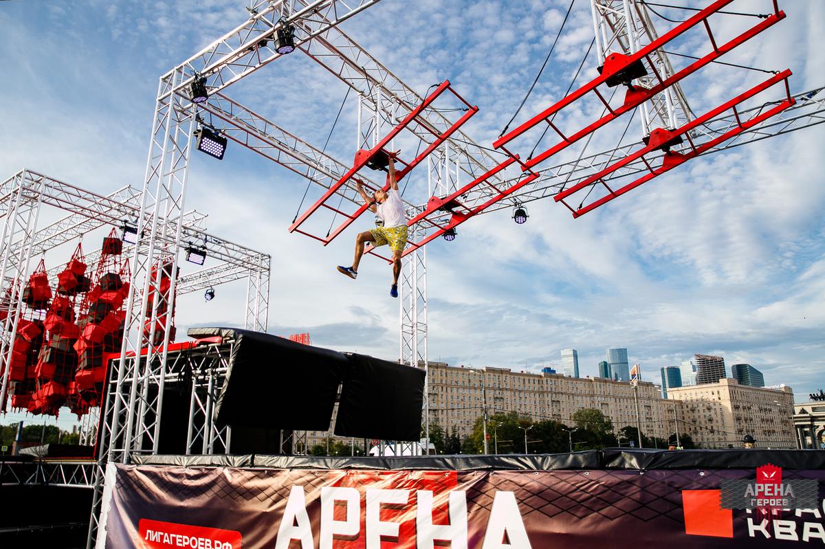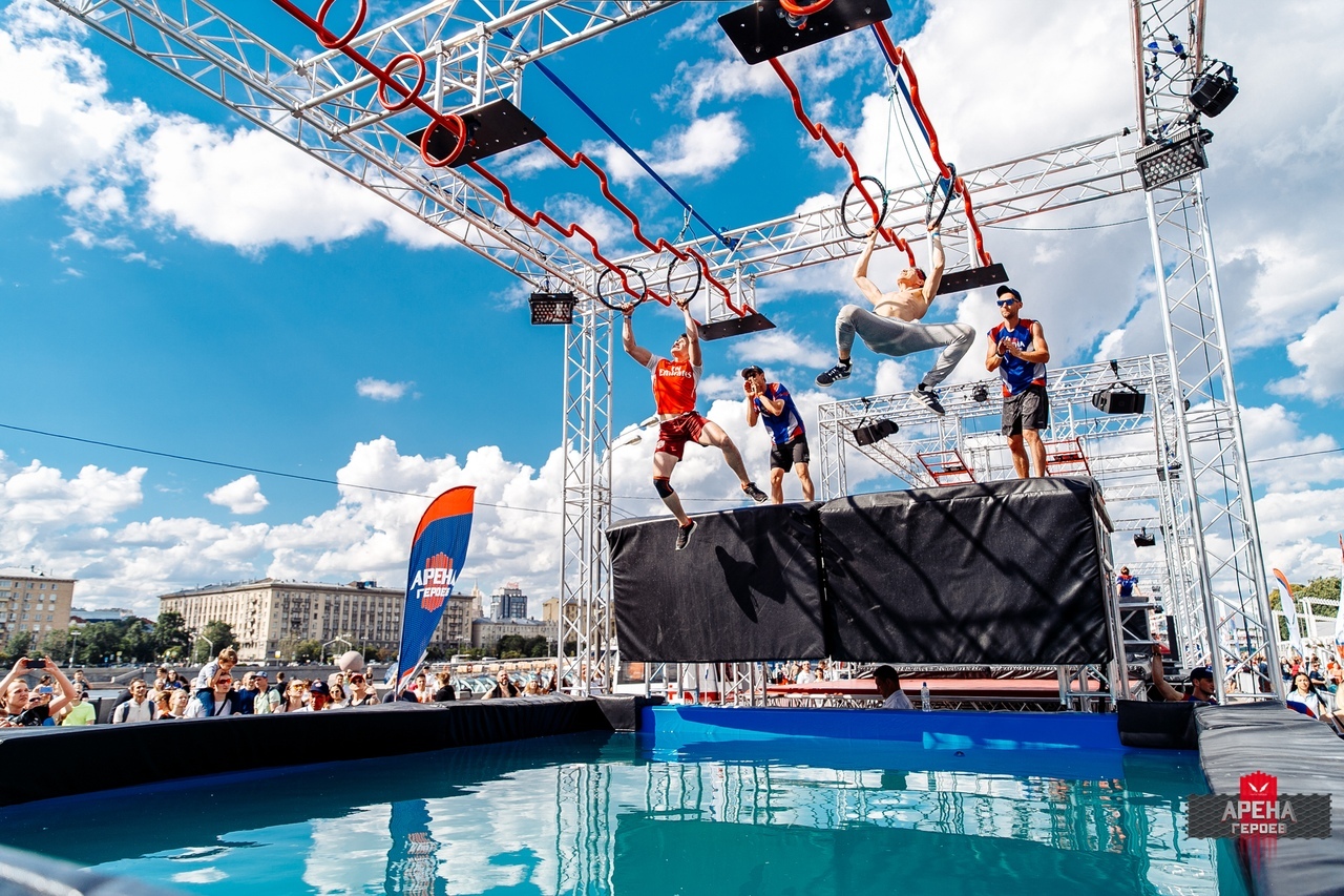 На трассе «Арены Героев» установлено 12 препятствий, среди них прыжки на канате через бассейн с водой, подвесные рукоходы и вращающиеся мостки. Участникам нужно преодолеть все испытания, а в финале взобраться на 4-метровую рампу. Стартовать спортсмены будут парами.