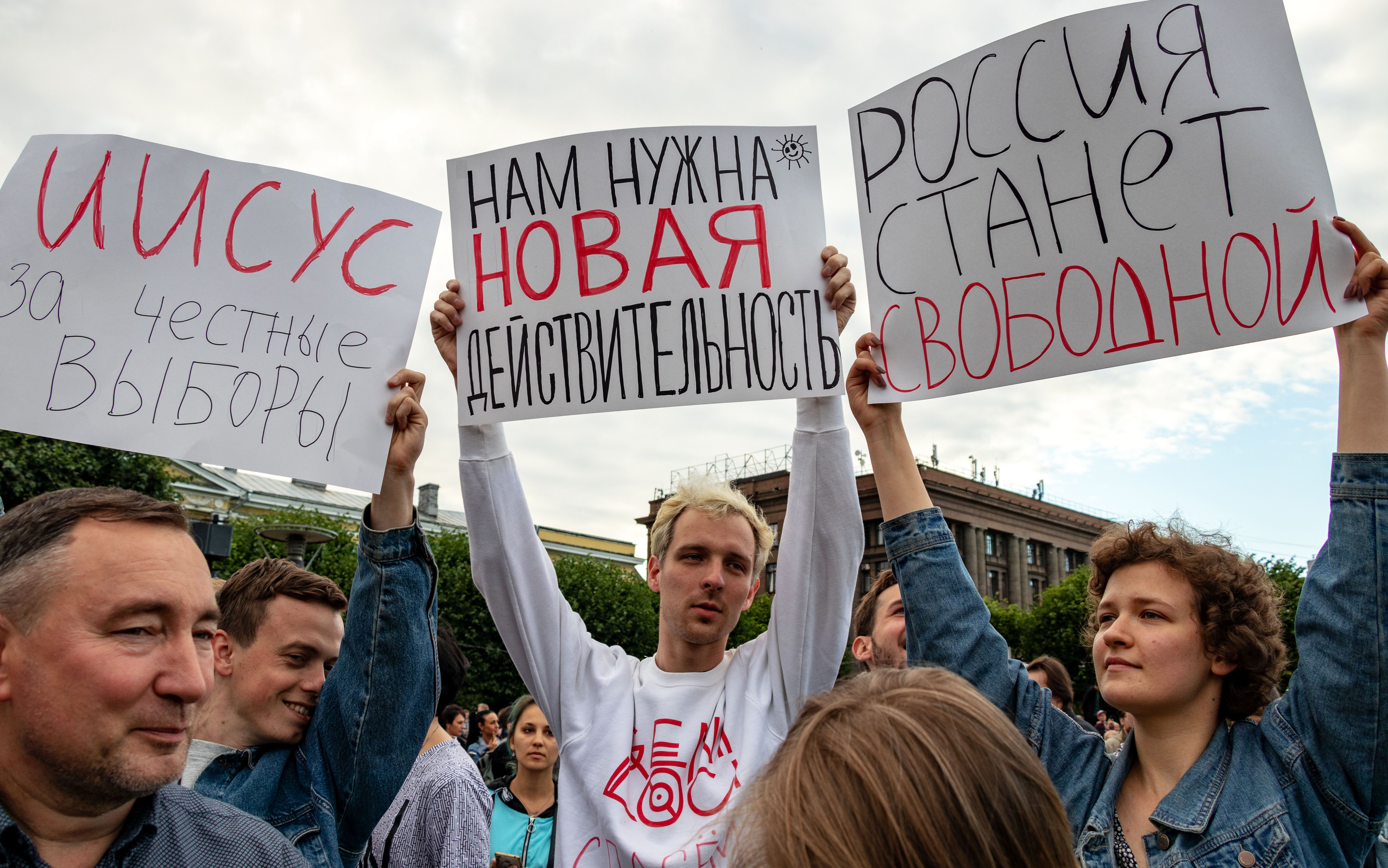 - 10 августа по всей России прошли акции за допуск независимых кандидатов на выборы в Мосгордуму. В самой российской столице прошёл согласованный митинг на проспекте Сахарова, на который, по данным "Белого счётчика", пришли 50 тысяч человек. После окончания митингов последовала череда задержаний людей, направлявшихся к администрации президента. Протесты продолжаются с середины июля – после того, как стало известно об отказе десяткам независимых кандидатов в регистрации.