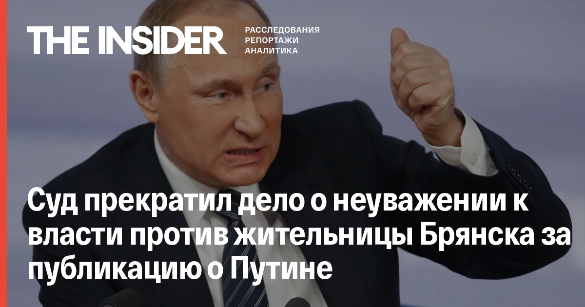 Суд прекратил дело о неуважении к власти против жительницы Брянска за публикацию о Путине