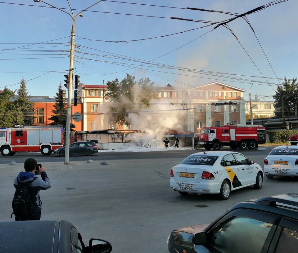 Инцидент произошел сегодня утром с автобусом «Scania» маршрута №15, обслуживаемого ООО «АДМ». Общественный транспорт выгорел полностью.
