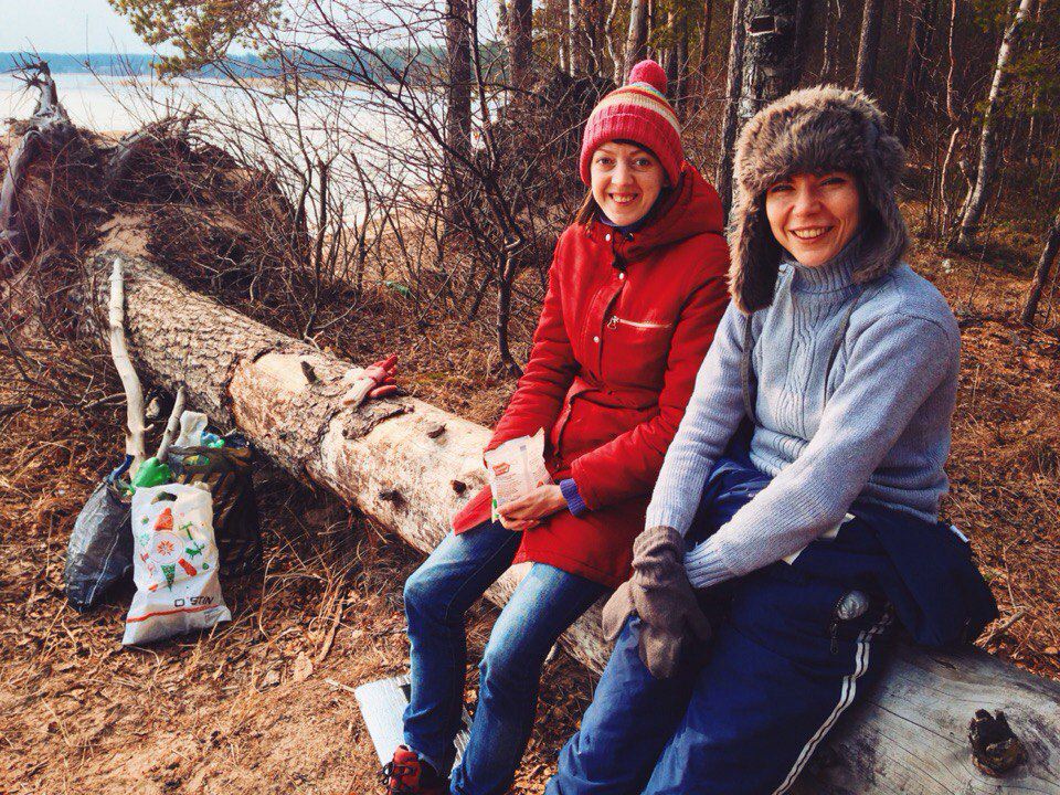 Маша (слева) и ее подруга убрали мусор в лесуФото: Владимир Катиев Маша рассказывала, как сопровождала детей (сестра детский хореограф) в лагерь на море. Ехали на поезде несколько дней, группа большая, жара, пили много. Бутылки из-под воды Маша наказала детям не выбрасывать и, когда они добрались, отыскала в городе контейнеры для пластика. А на обратном пути снова собрала у детей тару и притащила домой.