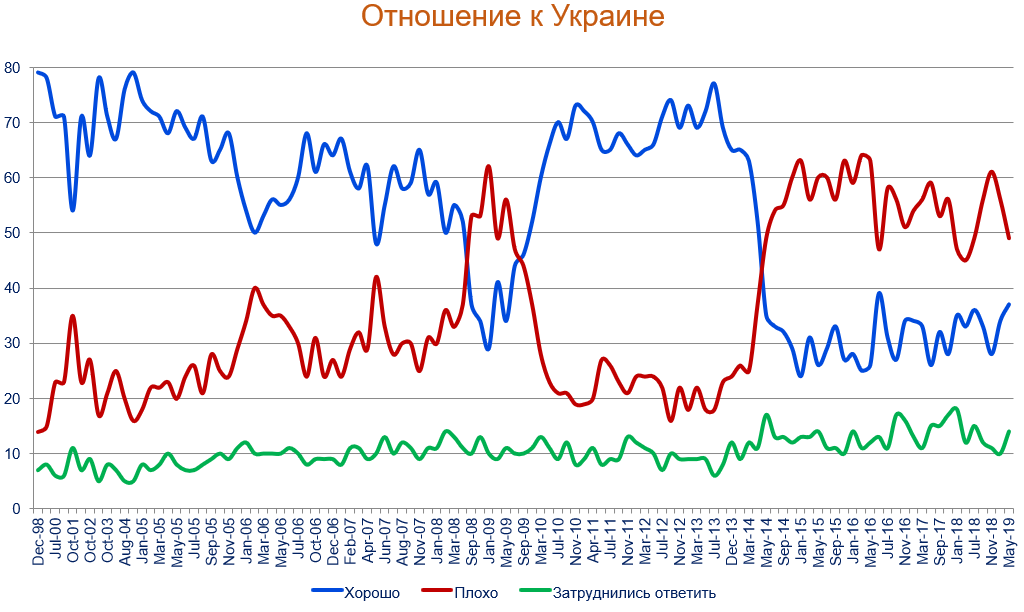 – Эта работа шла постепенно. Если смотреть на графики наших замеров отношения россиян к Украине, то каждая политическая кампания давала вспышку антиукраинских настроений: 2004, 2008 и прочих годов, некоторые всплески. Но надо было приложить очень много усилий, чтобы преодолеть взаимные симпатии, чувство близости россиян к Украине, представить ее врагом.