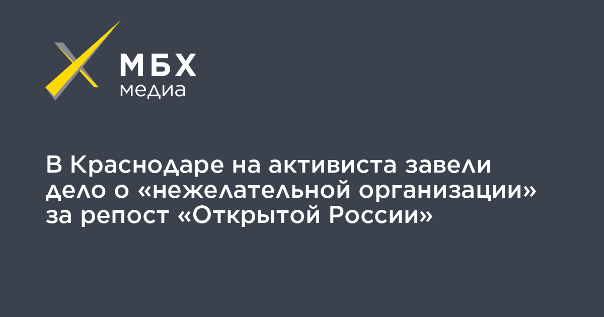 В Краснодаре на активиста завели дело о «нежелательной организации» за репост «Открытой России»