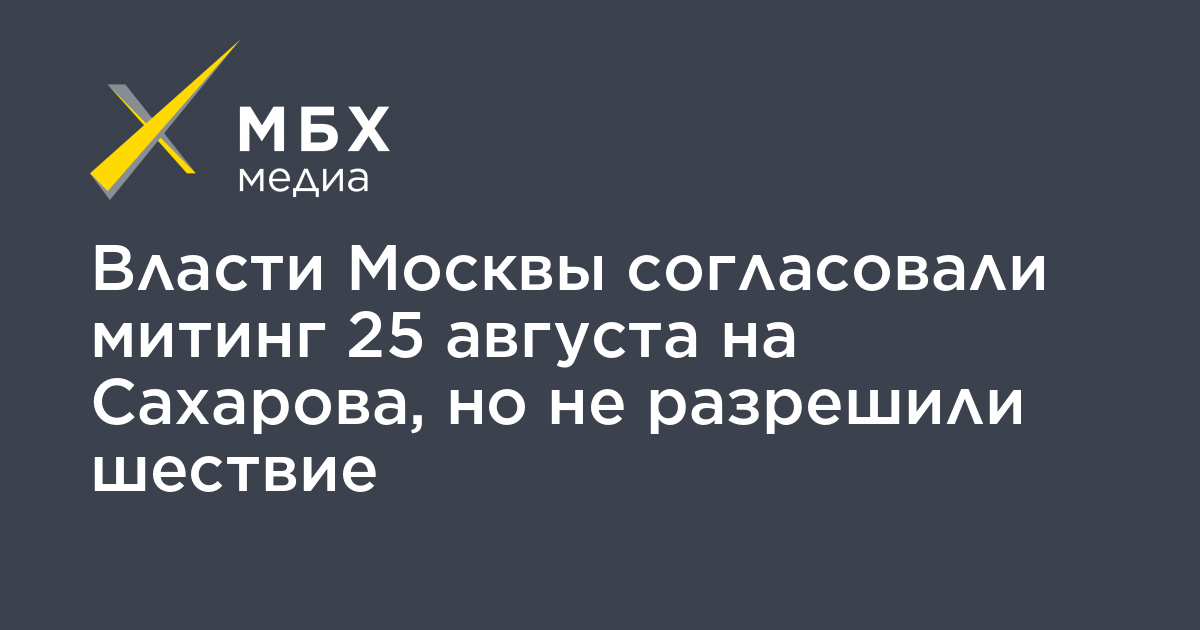 Власти Москвы согласовали митинг 25 августа на Сахарова, но не разрешили шествие