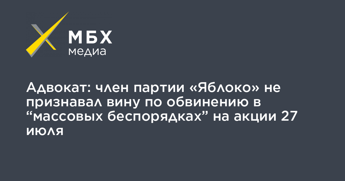 Адвокат: член партии «Яблоко» не признавал вину по обвинению в «массовых беспорядках» на акции 27 июля