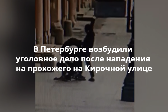 В Петербурге возбудили уголовное дело по статье о хулиганстве после нападения на прохожего на Кирочной улице. Об этом сообщает ГУ МВД по Петербургу.