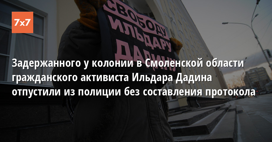 Активиста Ильдара Дадина, задержанного у колонии №3 в Смоленской области 14 августа, отпустили из отдела полиции, сообщил «7x7» сам Дадин.