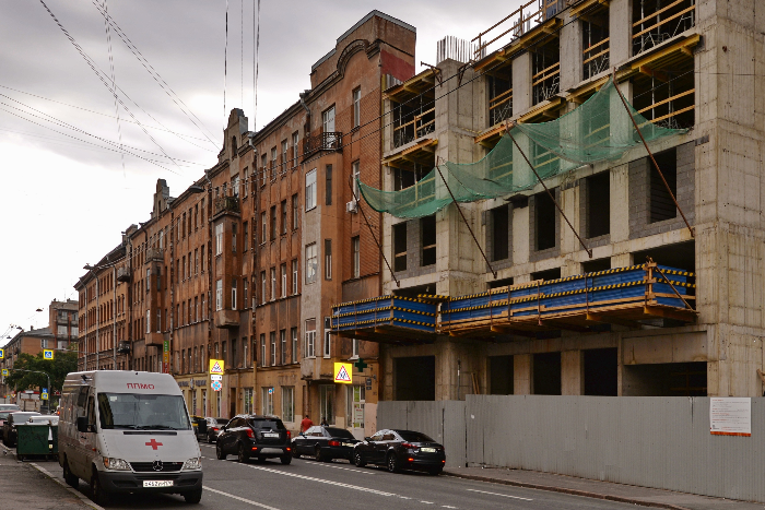 Исторический дом на Боровой улице загородила новостройка. Очевидцы сообщают, что у здания пропал эффект «дома-стены»