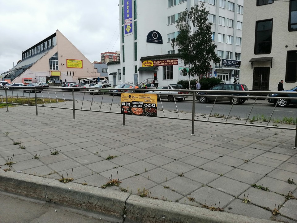 На втором месте — уродские заборы, которые захватили наш город. Их ставят по надуманным причинам, нет никаких данных, что они снижают аварийность. Более того, они создают опасную ситуацию — если в них врежется автомобиль, они разлетаются как шрапнель. Такие случаи были и в Архангельске в том числе. Заборы уродуют облик города сами по себе, но как вишенка на торте их ещё и завешивают незаконными баннерами.