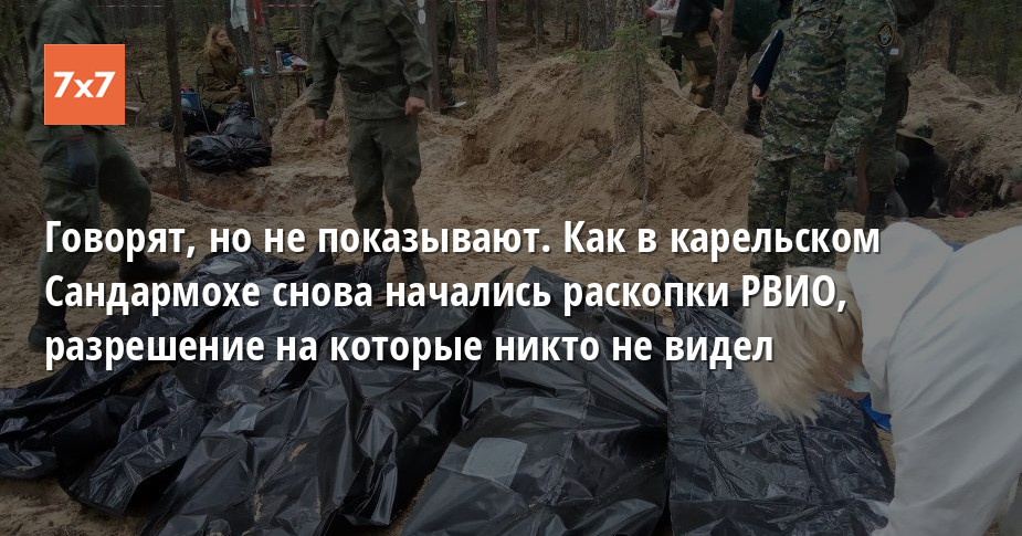 Российское военно-историческое общество (РВИО) летом 2019 года начало вторую экспедицию на месте массовых захоронений репрессированных в урочище Сандармох в Карелии. Поисковики проводят раскопки и эксгумируют останки тел. РВИО планирует доказать теорию историка из Петрозаводского госуниверситета Сергея Веригина. По его мнению, в Сандармохе захоронены не только жертвы «Большого террора», но и солдаты Красной армии, убитые финнами в Великую Отечественную войну. Представители общества «Мемориал», собиравшие документы о жертвах репрессий, скептически относятся к гипотезе Веригина и считают это попыткой уменьшить масштабы репрессий в СССР. После первой экспедиции в Сандармохе в 2018 году экспертиза останков и артефактов не подтвердила теорию историка. Что происходило в урочище во время второй экспедиции и насколько законно она проводится — в материале «7x7».