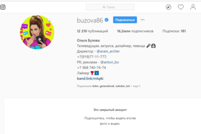 Бузова закрыла свой инстаграм. У нее 16 млн подписок