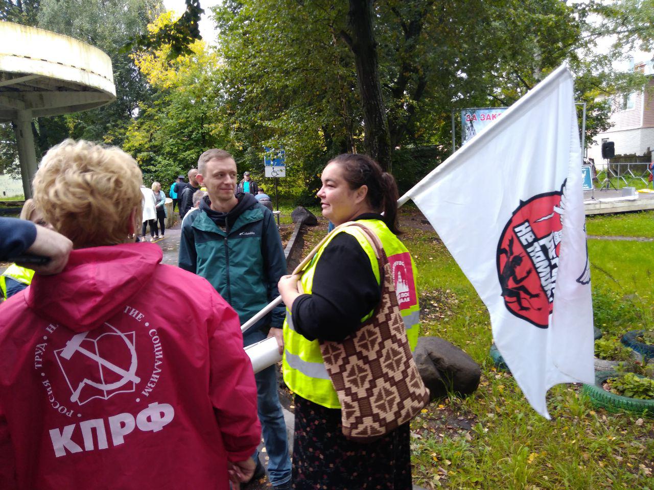 Ближе к полудню, когда митинг должен был стартовать, появилась делегация КПРФ, в т.ч. депутаты регионального парламента Сидорко, Емельянова, Клюев.