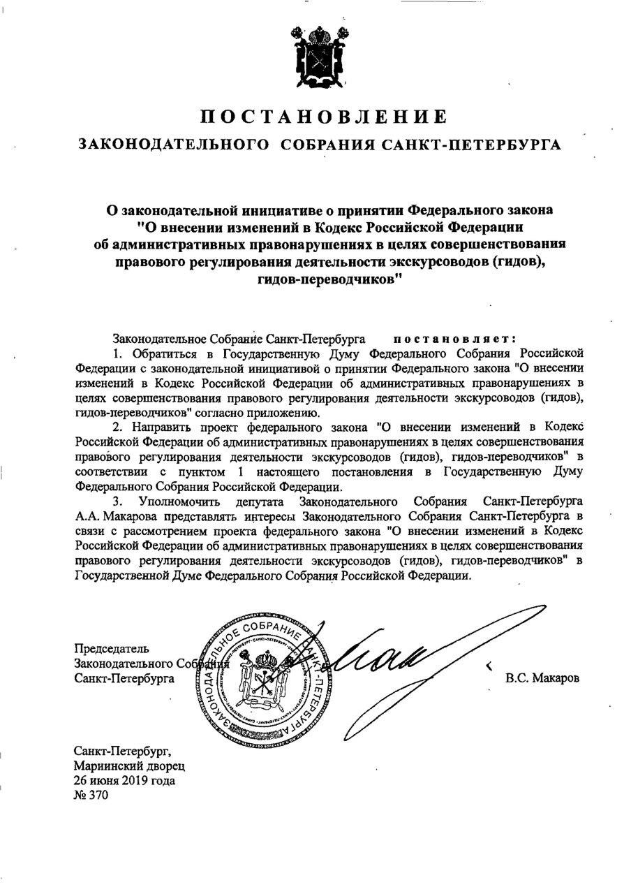 26 июня 2019 года депутатами Законодательного собрания Санкт-Петербурга в Госдуму внесены поправки в КоАП.