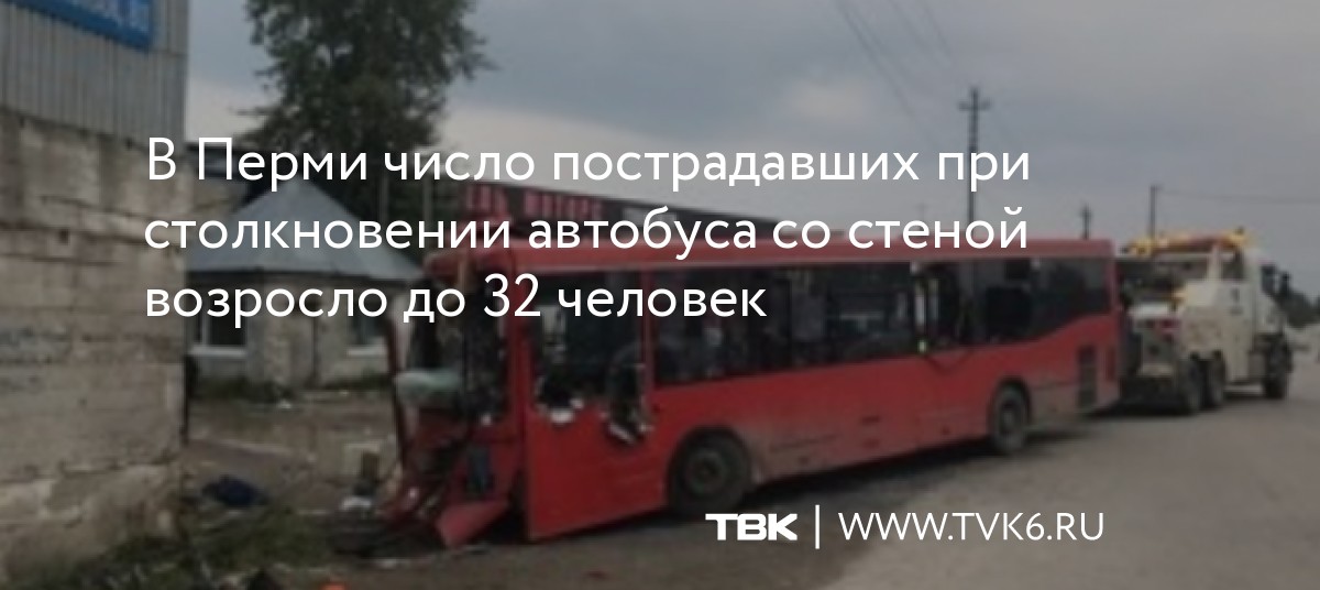 В Перми число пострадавших при столкновении автобуса со стеной возросло до 32 человек