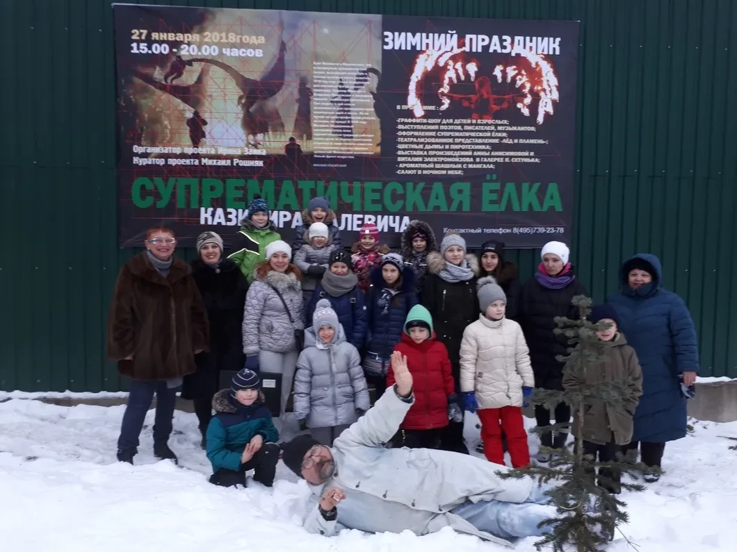 На новогодних праздниках в начале 2019 года художники решили провести в Немчиново детскую супрематическую елку. Детские праздники, на которые приезжали художники и музыканты, регулярно проходили в Немчиново с 2013 года, но этот должен был получиться особенным, потому что был приурочен к 140-летнему юбилею со дня рождения Малевича, наступавшему 14 января.