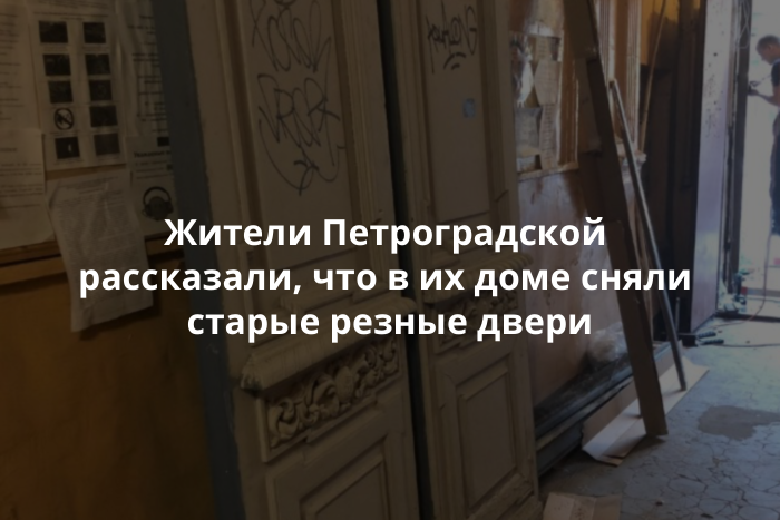 Жители Петроградской рассказали, что в их доме сняли старые резные двери. Горожане реставрировали их на свои средства