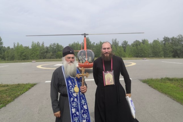 Крестный ход был совершён на вертолёте с иконами Божией Матери "Живоносный Источник" и "Коробейниковская-Казанская" 15 августа. В обряде также участвовал протодиакон Владимир Черных.
