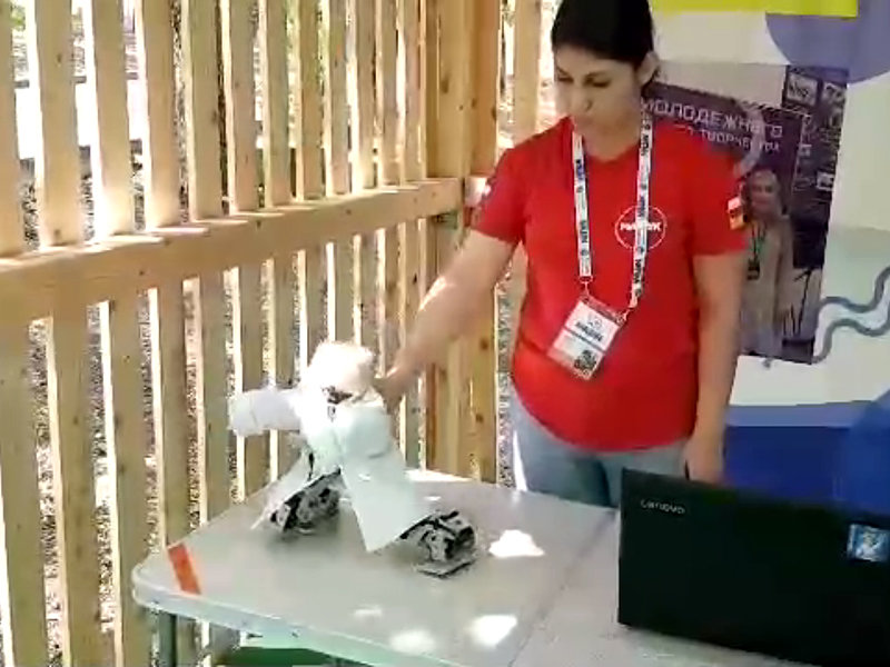 "Робота зовут Хажби, это древнее осетинское имя, робот танцует горский танец, его программировали преподаватели", – сообщила представитель команды Fab Lab Alania Диана Кадзаева. Она уточнила, что робот является талисманом команды и открывает республиканские соревнования по робототехнике и электронике "Леонардо".