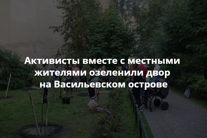 Активисты движения «Деревья Петербурга» совместно с местными жителями высадили в одном из дворов на 10-й линии Васильевского острова деревья и кустарники. Об этом они сообщили в своей группе во «ВКонтакте».