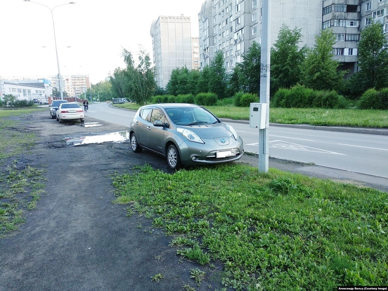Владелец электромобиля Александр Вельц сообщил изданию "Сибирь.Реалии", что за зарядку автомобиля он платит по счетчику – к столбу проведен кабель из его квартиры на первом этаже.