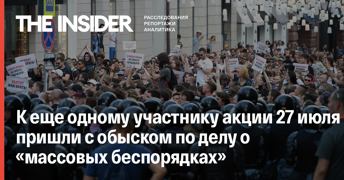 К еще одному участнику акции 27 июля пришли с обыском по делу о «массовых беспорядках»