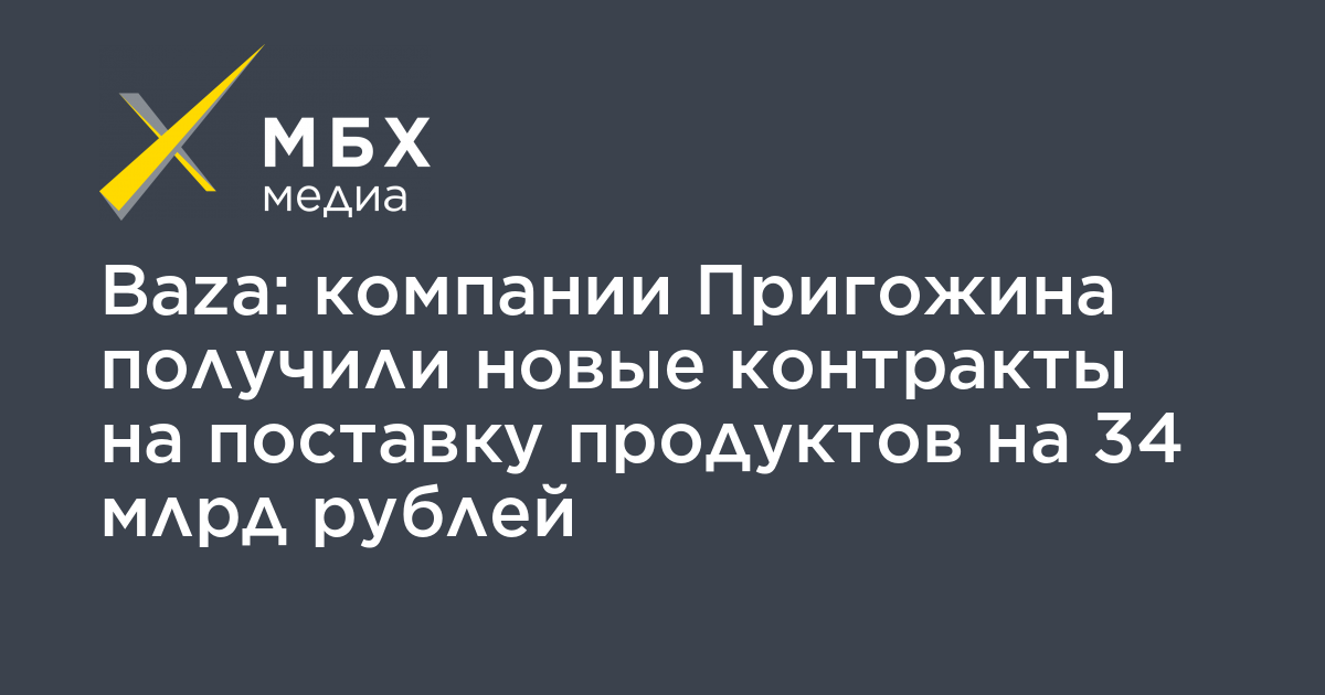 Baza: компании Пригожина получили новые контракты на поставку продуктов на 34 млрд рублей