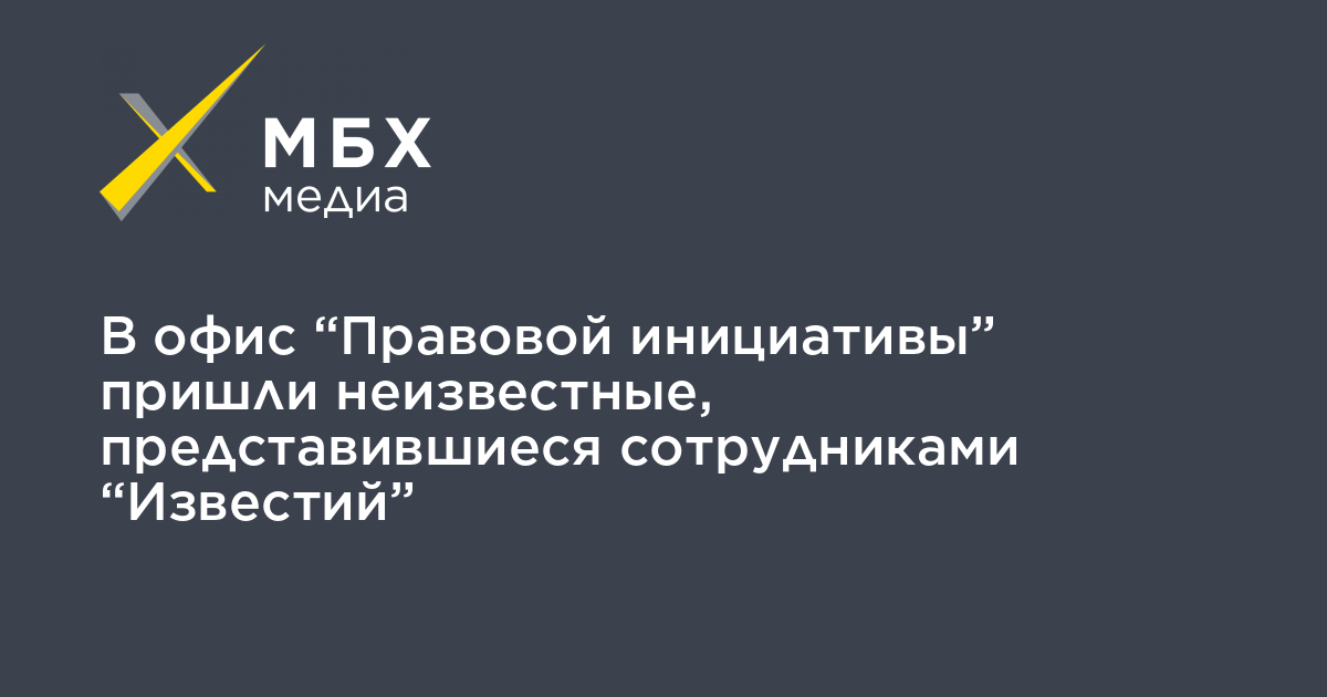 В московский офис правозащитной организации «Правовая инициатива» пришли неизвестные, представившиеся сотрудниками «Известий», они вели себя агрессивно и пытались попасть в кабинет директора. Об этом сообщила «МБХ медиа» пресс-секретарь организации Ксения Бабич.