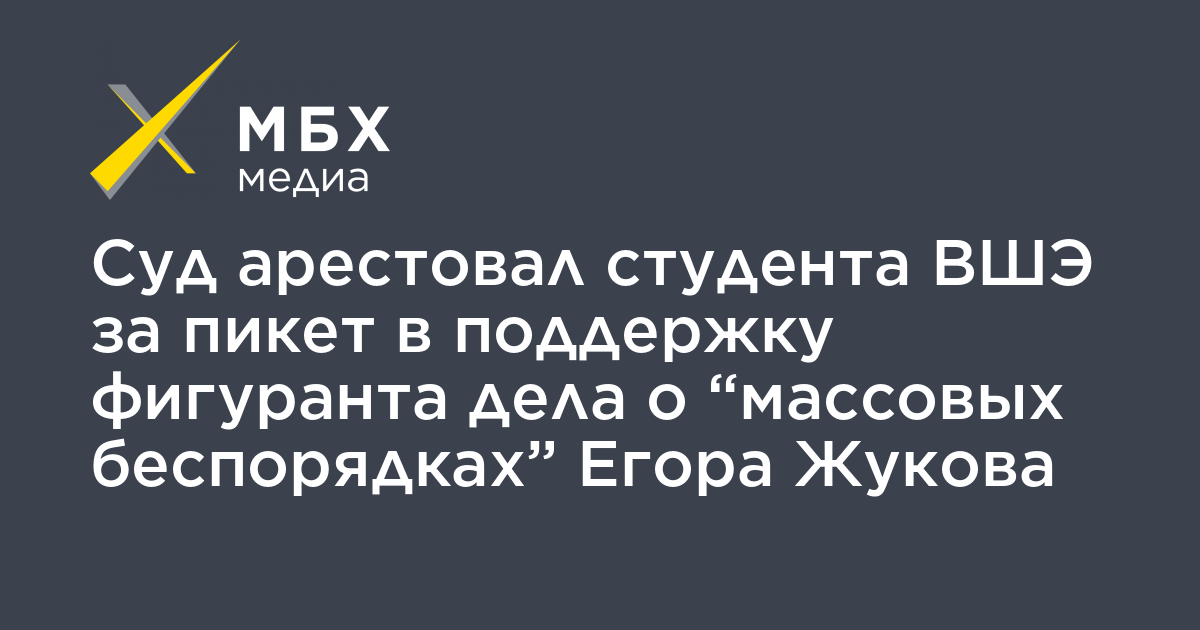 Суд арестовал студента ВШЭ за пикет в поддержку фигуранта дела о «массовых беспорядках» Егора Жукова