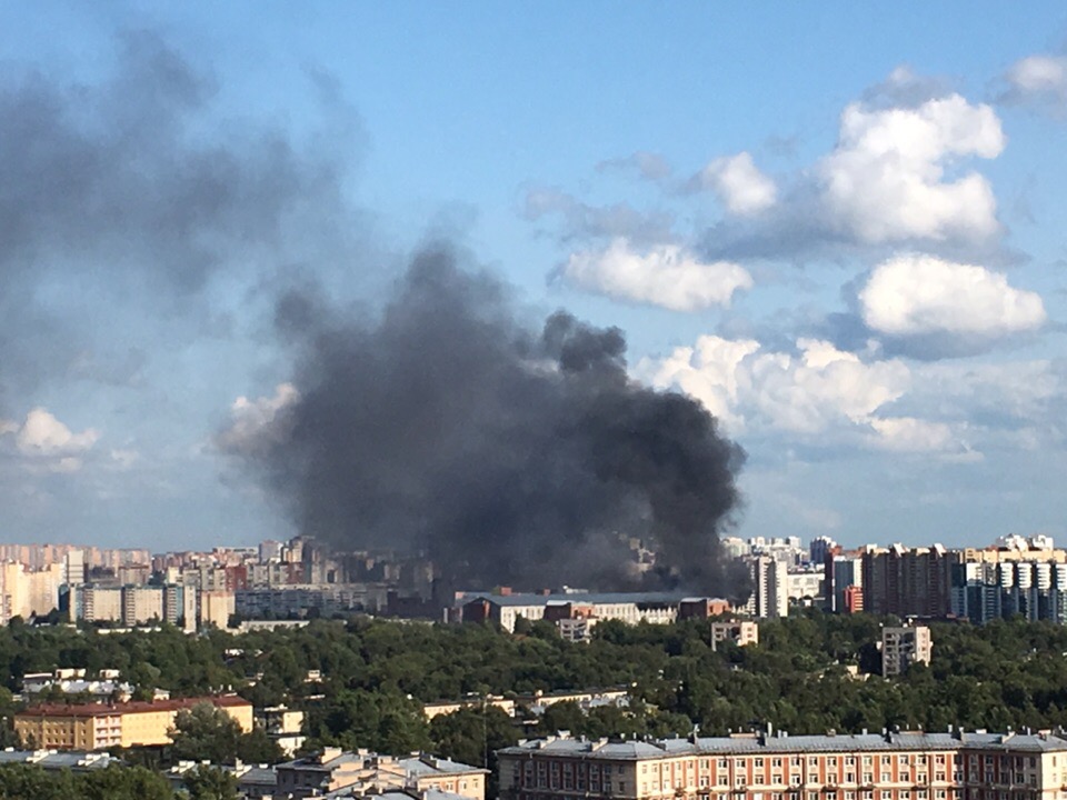 Сообщение о пожаре на Складской улице поступило в 14:10. Пожару присвоили самый высокий уровень сложности. На месте происшествия работали более 200 пожарных.