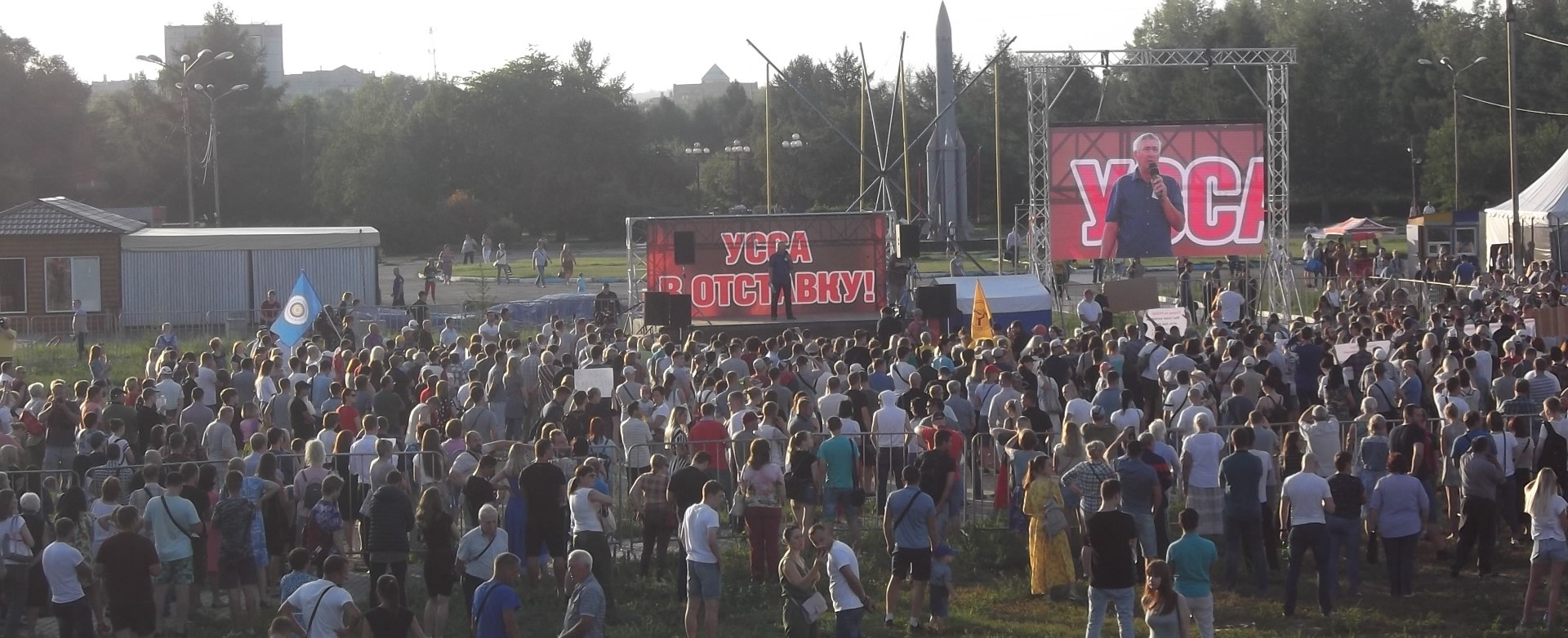 1 августа жители Красноярска уже выходили на акцию с аналогичными требованиями. По оценке корреспондента "Сибирь.Реалии" на месте событий, на митинг собралось около 2000 тысяч протестующих. Люди настаивали на том, что несмотря на то, что Александр Усс работает на посту главы региона всего два года, именно он отвечает за все проблемы в крае, поскольку больше 20 лет был председателем краевого заксобрания и утверждал законы по которым живет регион.