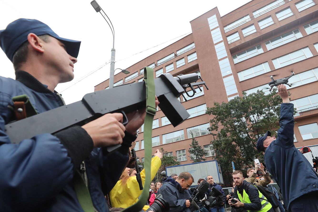 На митинге в Москве силовики сбили дрон электронной пушкой и забрали его. Где теперь дрон — неясно