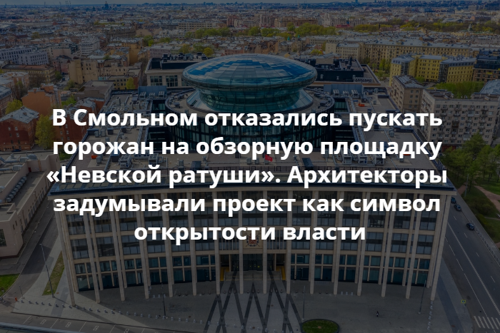 В Смольном заявили, что не будут пускать желающих горожан на купол атриума в комплексе «Невская ратуша» на Новгородской улице, 20. Об этом говорится в ответе на обращение петербуржца от дирекции по управлении объектами административного назначения.