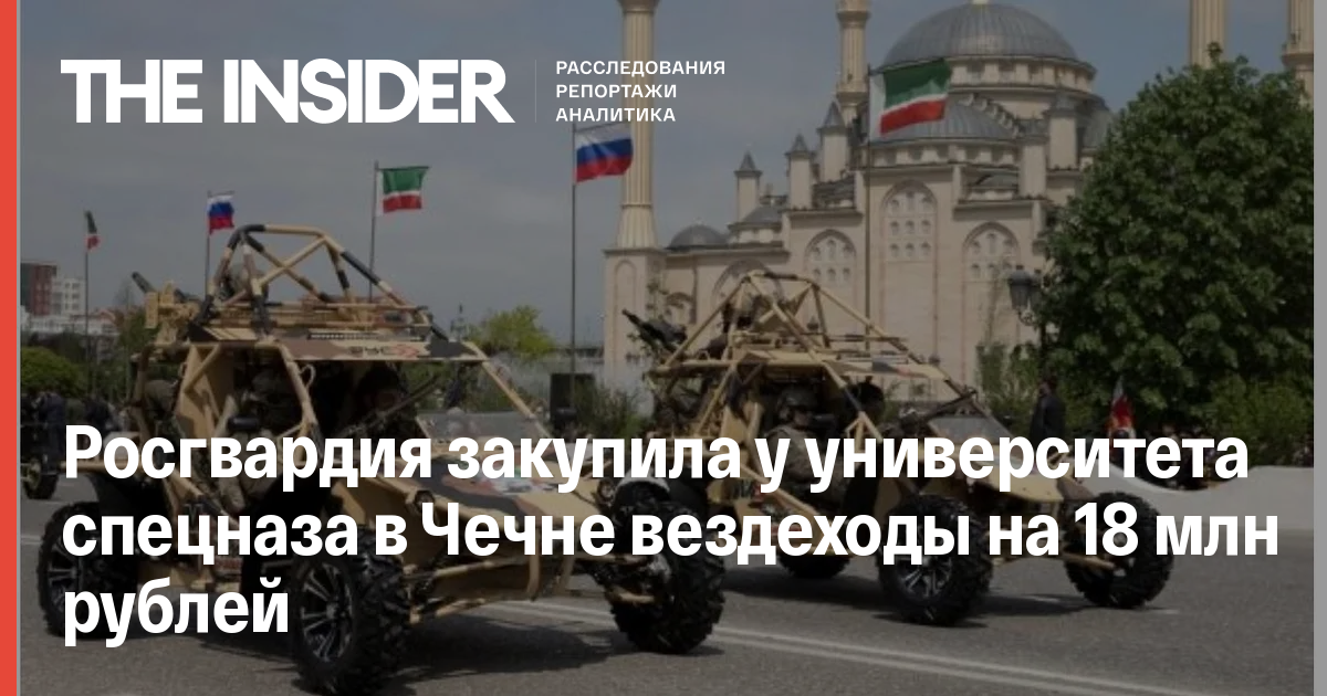 Росгвардия закупила у Российского университета спецназа в Чечне восемь автовездеходов-багги «Чаборз МЗ» за 18,1 млн рублей, пишут «Открытые медиа». Один автомобиль стоит 2,2 млн рублей. Как отмечают «Открытые медиа», ранее производитель обещал, что машины будут стоить по 1,5 млн.