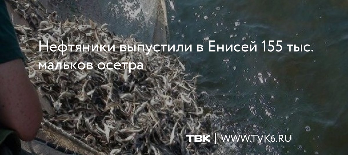 Предприятие «Славнефть-Красноярскнефтегаз» выпустило в Енисей 155 тыс. мальков редкого и ценного вида рыбы – осетра. До того, как попасть в Енисей, мальков около года выращивали в специальных инкубаторах на рыбоводном заводе. Выпускают мальков только тогда, когда они набирают нужную массу – до 1 г – и уже могут адаптироваться в природе.