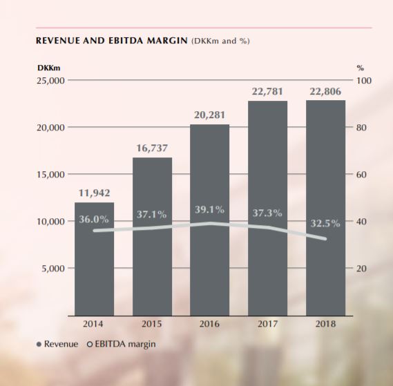 - До 2018 года продажи Pandora росли впечатляющими для западных рынков темпами — на 30–40% в год. Нулевой рост продаж в 2018 году стал для инвесторов жестоким разочарованием, а для спекулянтов — поводом весь год шортить акции компании, что отправило их в еще более глубокое падение. Снижалась и маржинальность бизнеса — рентабельность по EBITDA за последние два года упала на треть.