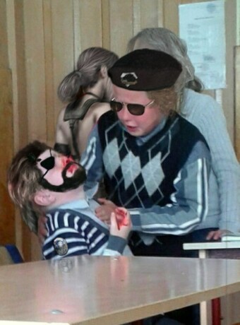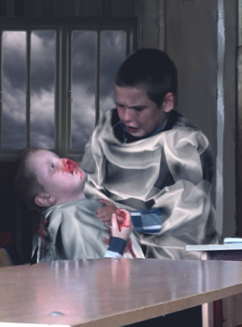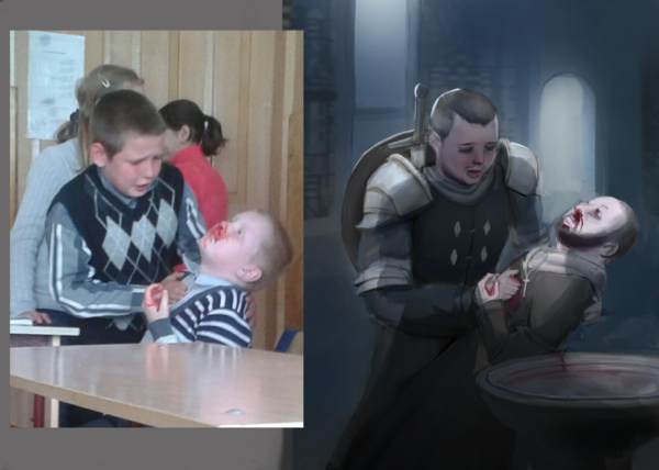 Сцена на фото драматична сама по себе. Но ещё больше трагедии ей придали пользователи соцсетей со всего мира, которые принялись делать фотожабы. Практически все они затрагивают одну и ту же тему: двух мальчиков помещают в разные эпохи и придуманные вселенные с трагическими развязками.
