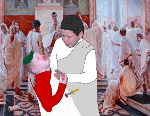 Американский солдат, умирающий на руках друга во Вьетнаме, Гай Юлий Цезарь, погибающий от рук Брута, Иван Грозный убивает своего сына — оказалось, что все эти эпизоды можно показать с помощью двух школьников, у одного из которых идёт кровь из носа. TJ вспомнил лучшие фотожабы, которые появлялись за три года.